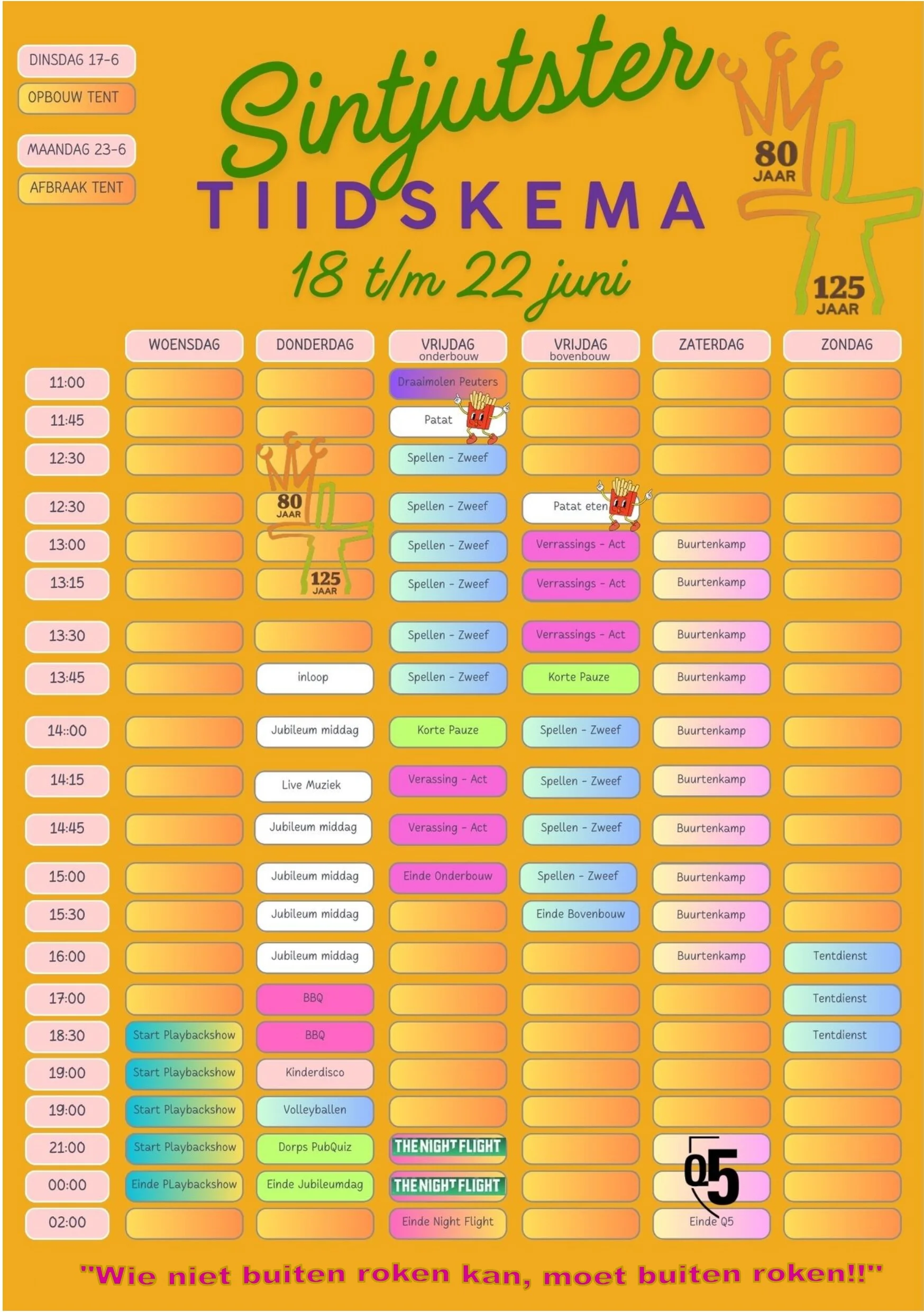 Voor de actuele tijden, check het tiidskema!